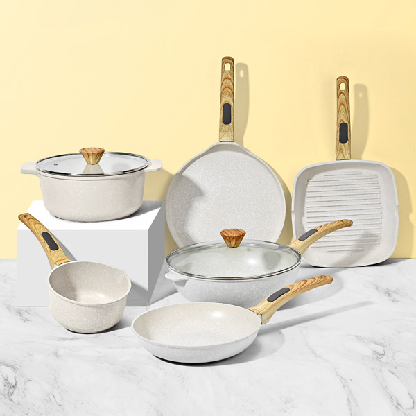 麦饭石锅的基材多用导热性良好的铝合金,经过压铸或冲压工艺成型后,再进行多层涂层处理,仿麦饭石涂层的分子结构致密,烹饪时能减少食材与锅面的接触阻力,即便处理淀粉含量高的食材,也能降低粘附情况。同时,麦饭石锅的锅体厚度经过科学配比,受热时热量能均匀扩散,避免局部高温导致食材煎糊,无论是煎制杂粮饼、炖煮养生汤,还是爆炒时令蔬菜,麦饭石锅都能适配多样的烹饪手法。